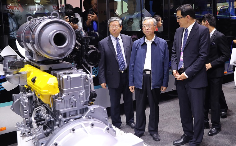參觀中,劉家義詳細了解了山東重工高端產品情況。在濰柴大馬力拖拉機CVT動力總成旁,他詳細了解該產品的技術與應用情況,對濰柴填補了中國高端農業裝備無級變速箱技術空白給予肯定。看到搭載濰柴氫燃料電池的首款中通12米城市客車時,劉家義饒有興致地詢問車輛經濟性、動力性等情況。同時,省委副書記、省長龔正,省委副書記楊東奇也先后到山東重工產品展區參觀,了解集團新舊動能轉換最新成果,稱贊山東重工在全省新舊動能轉換中走在了前列。