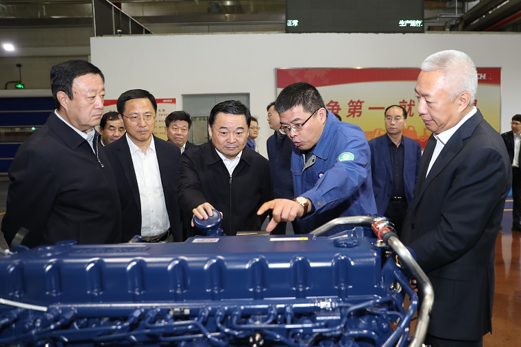 11月3日下午,國務院國資委黨委書記、主任郝鵬一行,在山東省副省長凌文的陪同下到濰柴調研,詳細了解企業在生產經營管理、產品質量控制、技術研發、新能源應用、市場銷售方面的匯報,對濰柴心無旁騖攻主業,緊盯世界前沿科技,大力推動技術創新、開拓國際市場等做法給予充分肯定,并勉勵濰柴牢記總書記囑托,堅持創新驅動爭一流,努力爭當全國乃至全球裝備制造業的標桿企業。