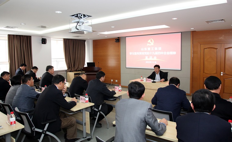 根據國資委統一安排部署,11月29日下午,省國資委黨委委員、副主任邵澤武同志到山東重工集團總部,為廣大黨員干部宣講黨的十九屆四中全會精神。