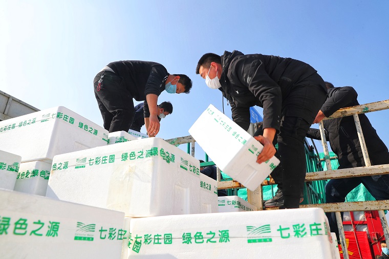 2月3日下午1點,在山東濰坊308國道與羊田路交叉路口,10輛中國重汽汕德卡、豪沃整裝待發,車上滿載濰柴動力捐贈武漢疫區的首批200多噸新鮮優質蔬菜。