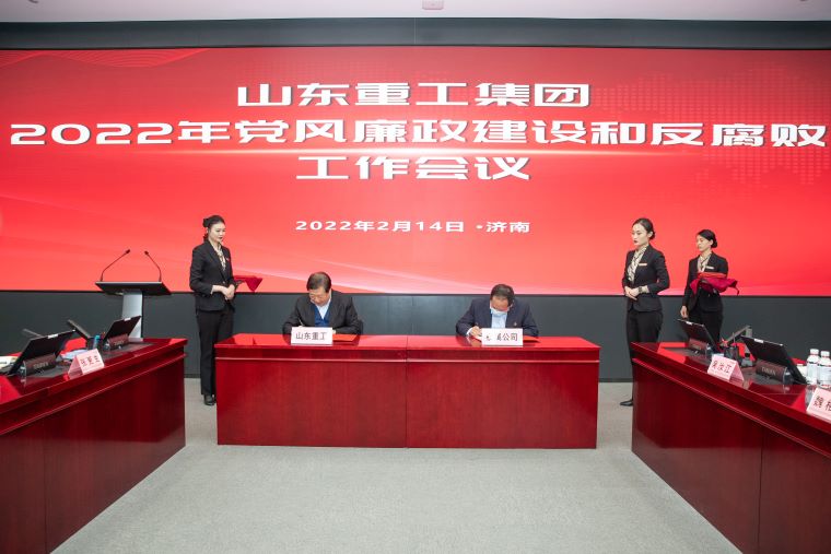 2月14日下午2:00,山東重工集團召開2022年黨風廉政建設和反腐敗工作會議,傳達學習了十九屆中央紀委六次全會和省紀委十一屆七次全會精神。黨委書記譚旭光與各權(quán)屬公司黨委書記簽訂黨風廉政建設黨委主體責任書,安排部署黨風廉政建設和反腐敗工作以及省委巡視反饋問題整改工作。